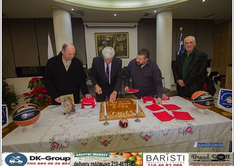 Μέσα σε ιδιαίτερα ενθουσιώδες και πανηγυρικό κλίμα πραγματοποιήθηκε την Σαββατο17 Ιανουαρίου 2026 η καθιερωμένη κοπή της βασιλόπιτας του Συνδέσμου Παλαιμάχων Καλαθοσφαιριστών Ιωνικού Νίκαιας, στον πρώτο όροφο του Δημαρχείου Νίκαιας.