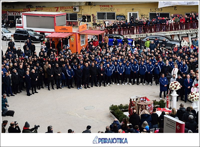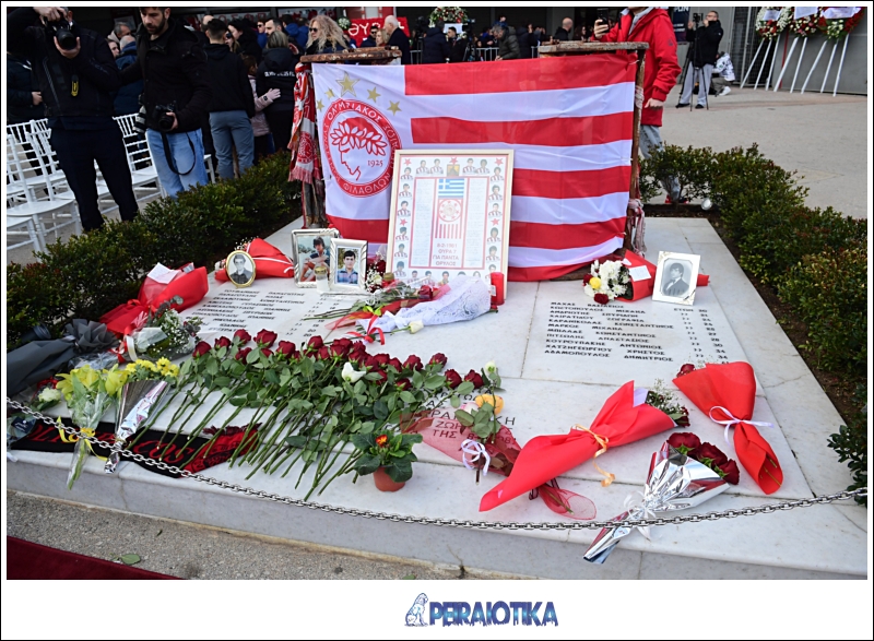 Ο πρόεδρος του Ολυμπιακού, Βαγγέλης Μαρινάκης, οι παλαίμαχοι άσοι της ομάδας, οι αθλητές όλων των τμημάτων, καθώς και πλήθος κόσμου, έδωσαν το «παρών» στο ετήσιο μνημόσυνο.