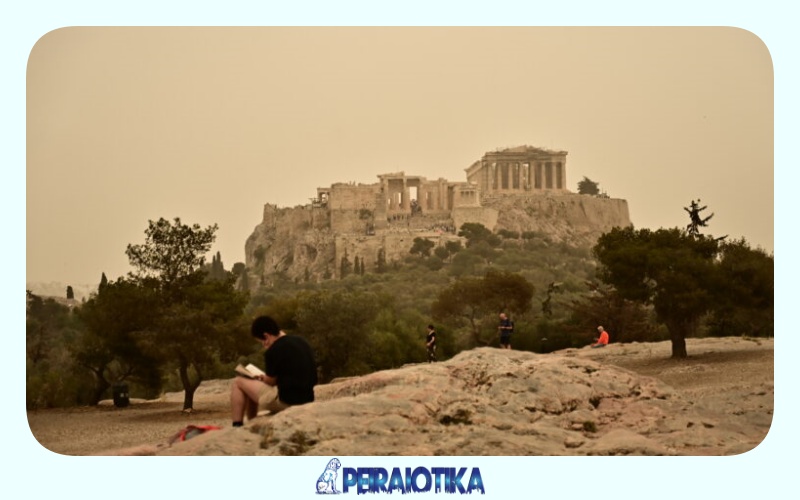 Μεγάλη συγκέντρωση αφρικανικής σκόνης σημειώνεται αυτή τη στιγμή πάνω από την Αττική. Το μνημείο της Ακρόπολης ουσιαστικά αυτή τη στιγμή αχνοφαίνεται, ενώ πολύ μειωμένη είναι και ορατότητα στα γύρω προάστια.