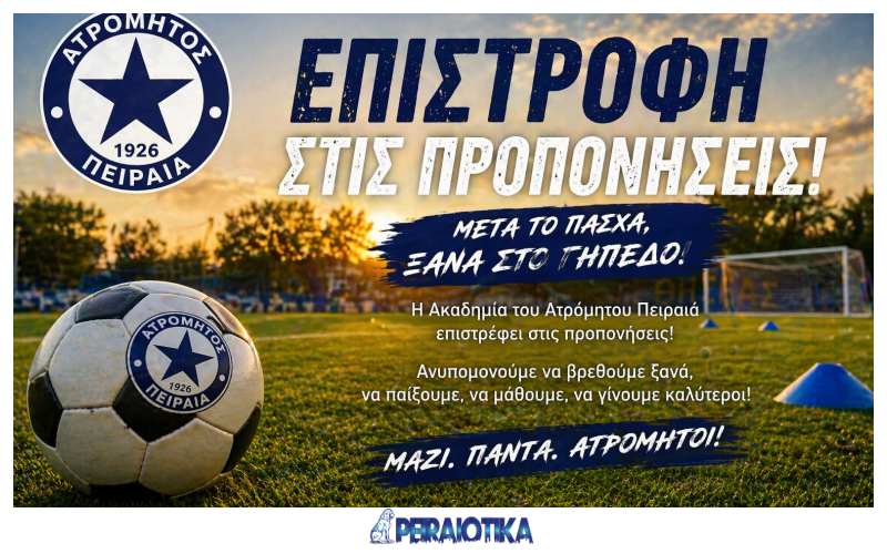 Μετά τη μικρή διακοπή του Πάσχα, η Ακαδημία του Ατρόμητου Πειραιά επιστρέφει εκεί που ανήκει στο χορτάρι, στη δράση, στον ρυθμό της προπόνησης.