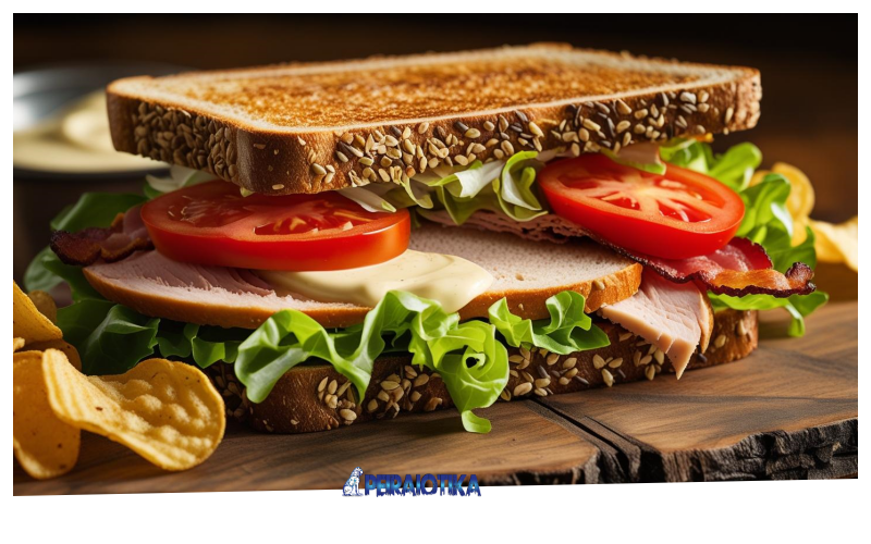 Με γαλοπούλα, gouda, iceberg, ντομάτα και μαγιονέζα – μια ελαφριά και γευστική επιλογή. Συνοδεύεται από σαλάτα με ανάμεικτα πράσινα λαχανικά.
