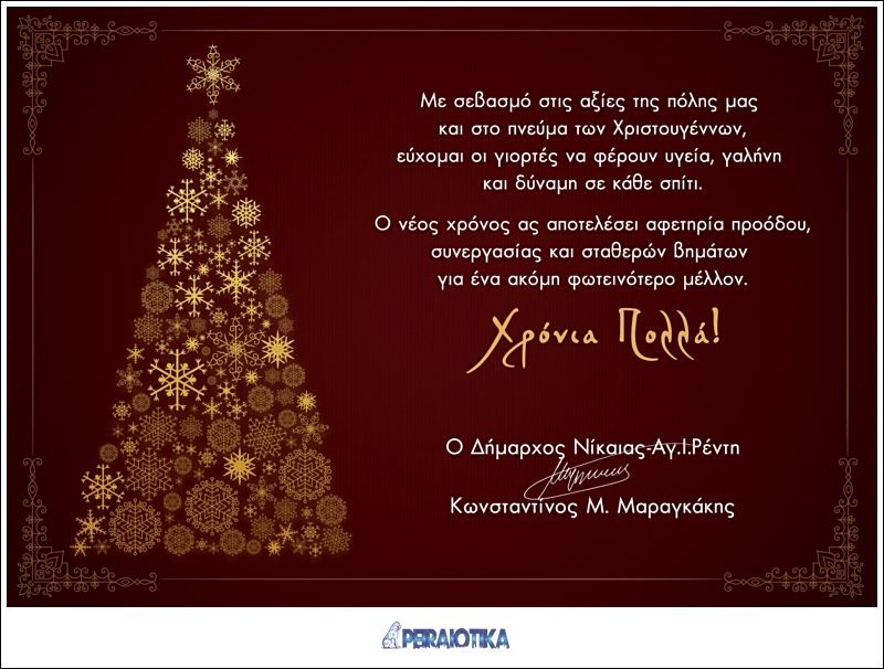 Με σεβασμό στις αξίες της πόλης μας και στο πνεύμα των Χριστουγέννων, εύχομαι οι γιορτές να φέρουν υγεία, γαλήνη και δύναμη σε κάθε σπίτι.