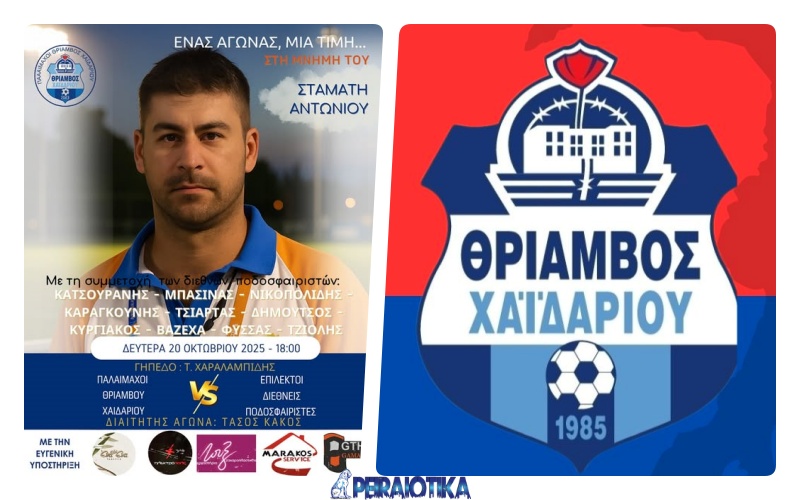 Τη Δευτέρα, 20 Οκτωβρίου 2025, το γήπεδο “Τ. Χαραλαμπίδης” στο Χαϊδάρι θα φιλοξενήσει έναν ξεχωριστό ποδοσφαιρικό αγώνα.