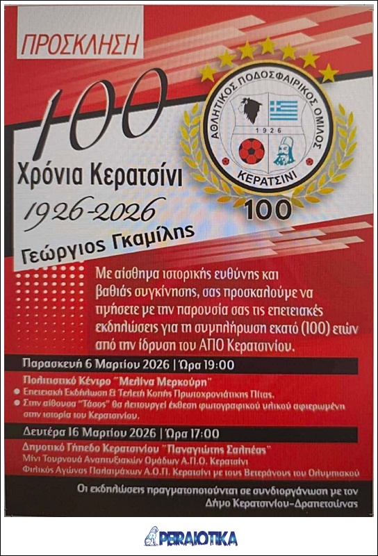 100 ΧΡΟΝΙΑ Α.Π.Ο. ΚΕΡΑΤΣΙΝΙΟΥ – ΕΠΕΤΕΙΑΚΕΣ ΕΚΔΗΛΩΣΕΙΣ