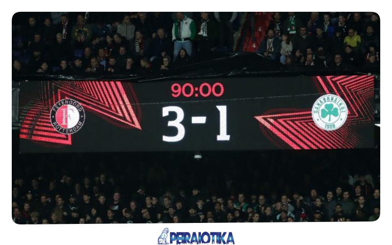 Στο «De Kuip» η Φέγενορντ επικράτησε με 3-1 του Παναθηναϊκού για την 3η αγωνιστική της League Phase του Europa League, σε μια αναμέτρηση όπου οι «πράσινοι» προηγήθηκαν αλλά δεν κατάφεραν να κρατήσουν το προβάδισμα.