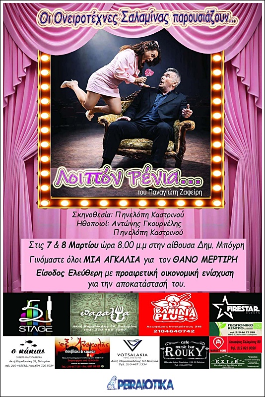 Οι Ονειροτέχνες Σαλαμίνας σας προσκαλούν σε μια ξεχωριστή παράσταση που συνδυάζει γέλιο, συγκίνηση και έρωτα – αλλά και ένα βαθύτερο σκοπό: να στηρίξουμε τον Θάνο Μερτίρη, το παιδί της κοινότητάς μας, στην αποκατάστασή του.