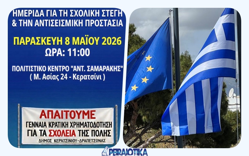 Ο Δήμος Κερατσινίου–Δραπετσώνας, στο πλαίσιο του στρατηγικού σχεδιασμού του για την αναβάθμιση των σχολικών υποδομών και την ενίσχυση της ασφάλειας των μαθητών, διοργανώνει ημερίδα με θέμα: