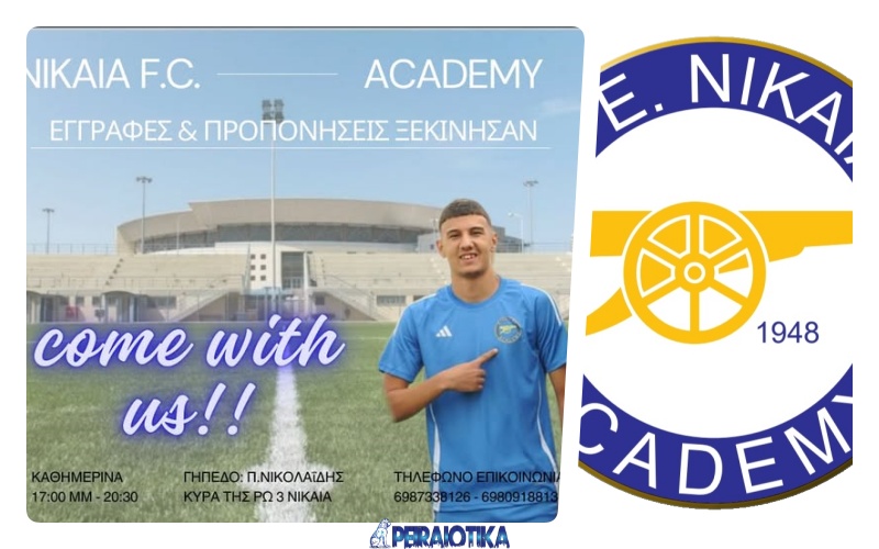 Μην περιμένεις άλλο! Το ταξίδι ξεκινάει τώρα. Έλα μαζί μας στη Nikaia F.C. Academy και γίνε κομμάτι της ομάδας που θα σου δώσει τα εφόδια να ξεχωρίσεις μέσα και έξω από το γήπεδο.📞 Τηλέφωνα Επικοινωνίας: