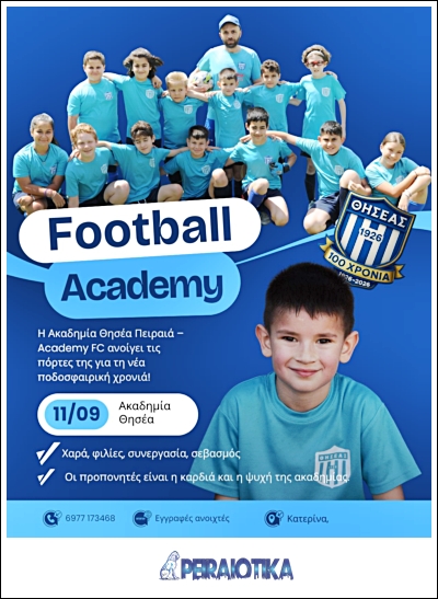 Η ακαδημία Θησέας Academy FC Πειραιάς συνεχίζει δυναμικά την πορεία της, με τις προπονήσεις να έχουν ήδη ξεκινήσει και τους προπονητές να βρίσκονται στις θέσεις τους, έτοιμοι να καθοδηγήσουν τα παιδιά σε ένα ταξίδι ανάπτυξης, εξέλιξης και ποδοσφαιρικών συγκινήσεων.