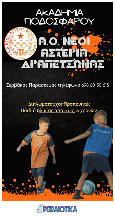 Η Ακαδημία «Νέοι – Αστέρια Δραπετσώνας» αποτελεί ένα φωτεινό παράδειγμα για το πώς μια τοπική πρωτοβουλία μπορεί να συνδυάσει τον αθλητισμό με την εκπαίδευση, την κοινωνική δράση και την ανάπτυξη προσωπικοτήτων.
