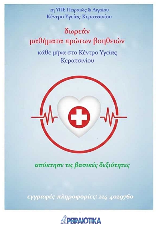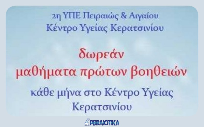 ΔΩΡΕΑΝ ΜΑΘΗΜΑΤΑ Α΄ ΒΟΗΘΕΙΩΝ ΣΤΟ ΚΕΝΤΡΟ ΥΓΕΙΑΣ ΚΕΡΑΤΣΙΝΙΟΥ