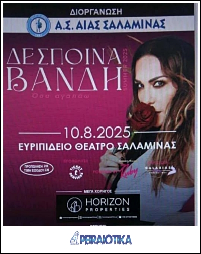 Στις 10 Αυγούστου 2025 και ώρα 21:30, στο Ευριπίδειο Θέατρο Σαλαμίνας, η μοναδική Δέσποινα Βανδή θα μας προσφέρει το μεγαλύτερο μουσικό event του καλοκαιριού!
