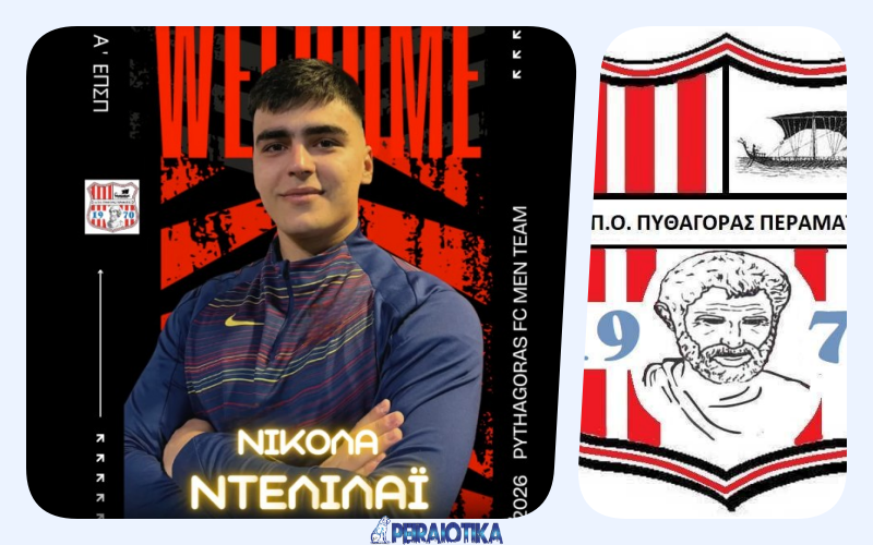 Ο Πυθαγόρας Περάματος ανακοινώνει την απόκτηση του Νικόλα Ντελιλαϊ, γεννημένου το 2003, ο οποίος έχει ήδη δηλωθεί στο επίσημο ρόστερ της ομάδας μας μέσω της Ε.Π.Σ. Πειραιά, αποτελώντας πλέον ενεργό μέλος του αγωνιστικού μας δυναμικού.