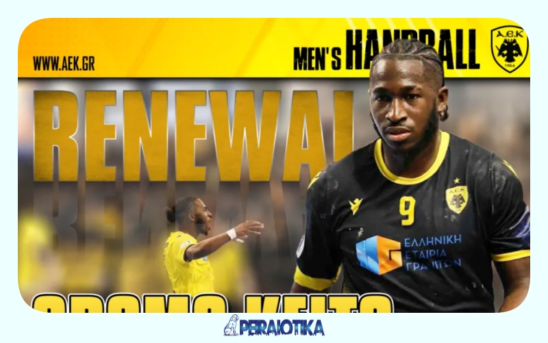 «Η ΑΕΚ βρίσκεται στην ευχάριστη θέση να ανακοινώσει την ανανέωση της συνεργασίας της με τον Αντάμα Κεϊτά. Ο 28χρονος διεθνής Γάλλος αριστερός εξτρέμ θα ενισχύσει και τη νέα σεζόν το ανδρικό τμήμα Χάντμπολ του Συλλόγου.»