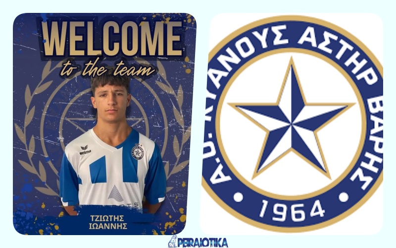Ο Ιωάννης Τζιώτης (γεννημένος το 2007) ανήκει πλέον στο δυναμικό του Κυανού Αστέρα Βάρης! Αγωνίζεται ως αριστερός μπακ-χαφ και έρχεται στην ομάδα μας από τους Νέους Ευγενείας, έτοιμος να δουλέψει και να εξελιχθεί στο απαιτητικό περιβάλλον της ανδρικής ομάδας.