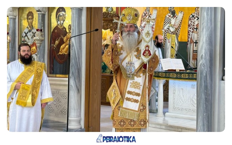 Στον Ιερό Ναό Αγίου Ελευθερίου Καμινίων, μετά την Ύψωση του Τιμίου και Ζωοποιού Σταυρού (21 Σεπτεμβρίου 2025), ο Σεβασμιώτατος Μητροπολίτης Πειραιώς κ. Σεραφείμ τέλεσε τη Θεία Λειτουργία και κήρυξε έναν λόγο βαθιά πνευματικό και προσανατολισμένο στην καθημερινή ζωή του πιστού.