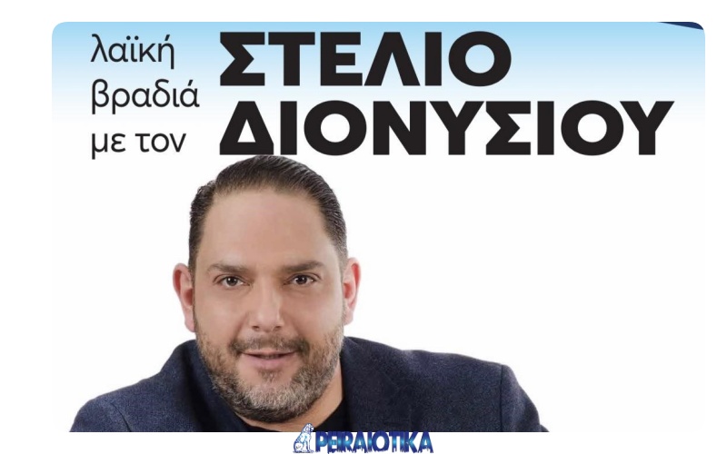 Ο Δήμος Κερατσινίου-Δραπετσώνας και η Περιφέρεια Αττικής διοργανώνουν μια μοναδική βραδιά με τον διάσημο Έλληνα λαϊκό τραγουδιστή Στέλιο Διονυσίου στην Πλατεία Κύπρου, με ελεύθερη είσοδο για το κοινό.