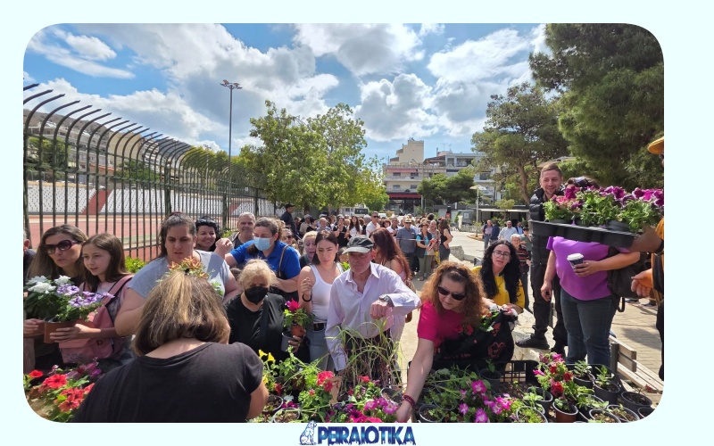 Σε μια πολύχρωμη γιορτή λουλουδιών στο Πέραμα, που σκόρπισε ενθουσιασμό σε μικρούς και μεγάλους, ο δήμαρχος Γιάννης Λαγουδάκος μοίρασε πέντε χιλιάδες ανθοφόρα φυτά στους δημότες της πόλης.