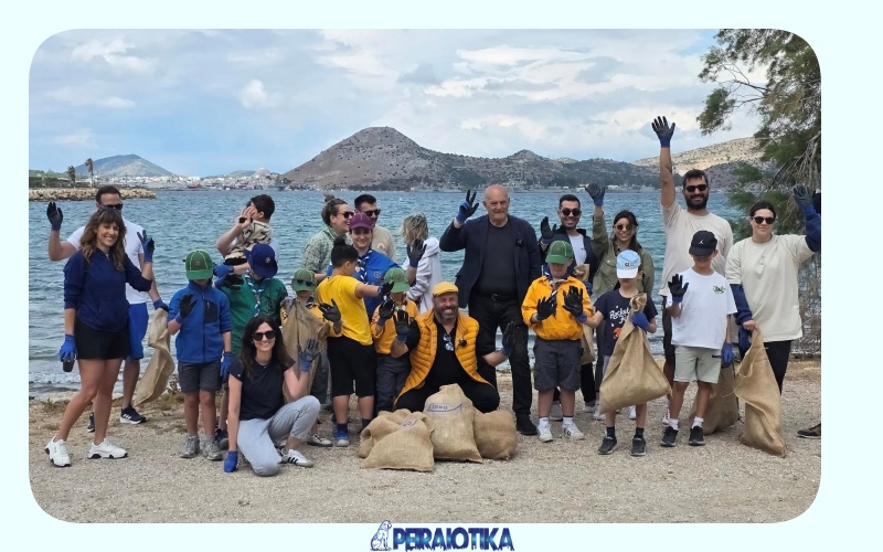 Αντίστοιχη δράση έγινε και στην μικρή πλαζ του Περάματος, με στόχο την απομάκρυνση πλαστικών και άλλων απορριμμάτων.