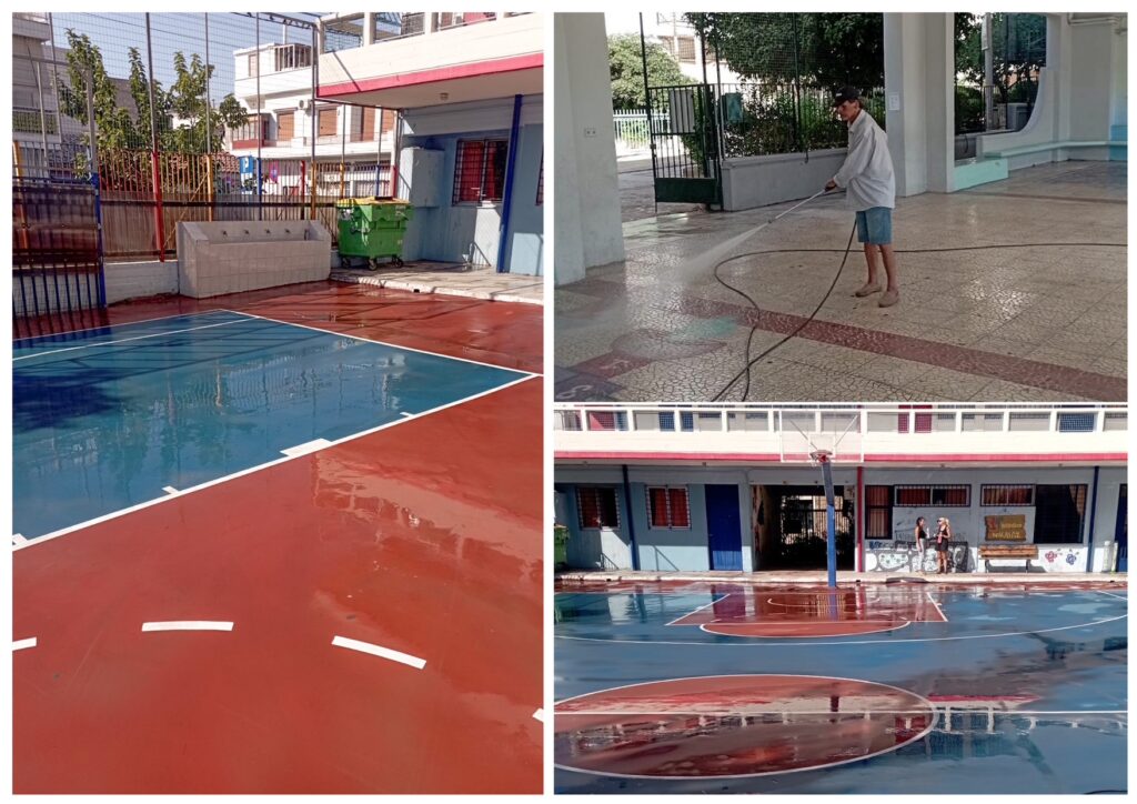 Η Διεύθυνση Καθαριότητας πραγματοποίησε πλυσίματα στους αύλειους χώρους, ενώ η Διεύθυνση Πρασίνου και Περιβάλλοντος ανέλαβε εργασίες κλαδέματος και περιποίησης δέντρων και θάμνων, ώστε οι μαθητές και οι εκπαιδευτικοί να επιστρέψουν σε ένα όμορφο και ασφαλές περιβάλλον.