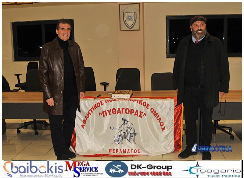 Το «παρών» έδωσε ο πρόεδρος του συλλόγου,  ο Πέτρος Σαλπέας οποίος στον χαιρετισμό του αναφέρθηκε στο μεγάλο μεράκι και την αφοσίωση όλων όσοι βρίσκονται δίπλα στον Πυθαγόρα, δίνοντας ιδιαίτερη έμφαση στο Διοικητικό Συμβούλιο που καθημερινά αφιερώνει χρόνο και κόπο για τη συνεχή πρόοδο και τις επιτυχίες του συλλόγου.