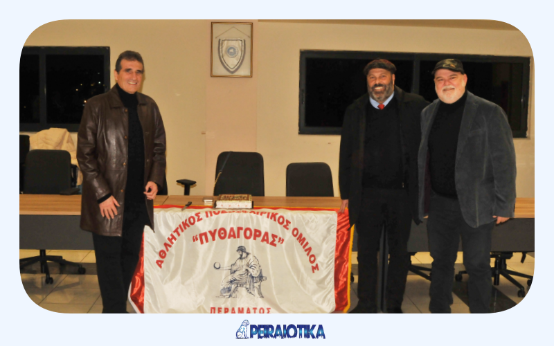 Στην εκδήλωση παρευρέθηκαν ακόμη αντιδήμαρχοι και μέλη του Δημοτικού Συμβουλίου Περάματος, καθώς και ο πρόεδρος των Βετεράνων Ποδοσφαιριστών Περάματος, Στέφανος Φούσκας, ο οποίος ευχήθηκε υγεία και νέες επιτυχίες στον ιστορικό σύλλογο.