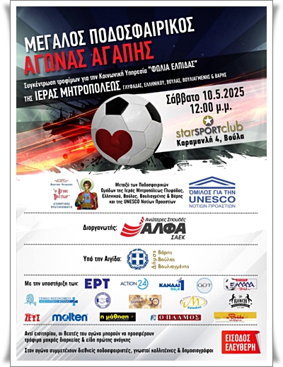 Σας προσκαλούμε στο μεγάλο ποδοσφαιρικό αγώνα αγάπης