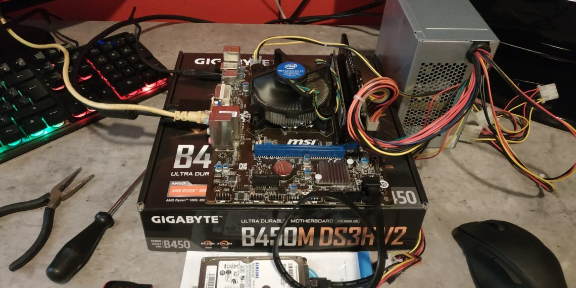 Τεχνικός έλεγχος μητρικής επεξεργαστή και σύνθεση κόμματι κομμάτι στο κουτί εγκατάσταση