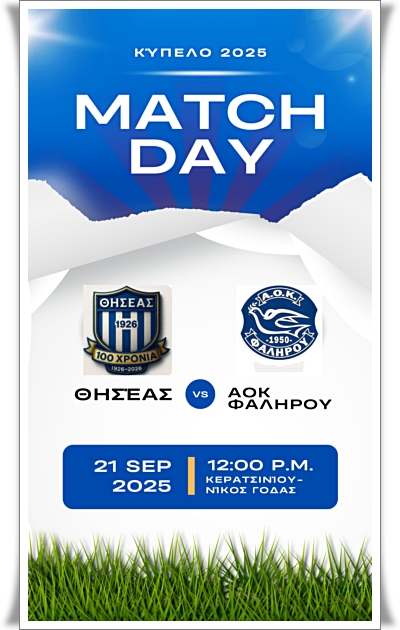 Ο Θησέας Πειραιώς εισέρχεται στη δεύτερη φάση του Κυπέλλου 2025, και η παρουσία και η φωνή κάθε φίλου της ομάδας είναι καθοριστική.