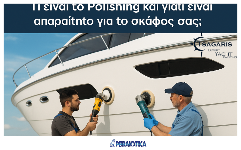 Το polishing είναι μια ειδική διαδικασία γυαλίσματος που εφαρμόζεται στο εξωτερικό του σκάφους και συγκεκριμένα στο gelcoat ή στη βαμμένη επιφάνεια. Στόχος του είναι να αφαιρέσει θαμπάδες, μικρογρατζουνιές, ξεθωριασμένες περιοχές και σημάδια που προκαλεί το αλάτι, ο ήλιος και το θαλάσσιο περιβάλλον. Με σωστή εφαρμογή, το σκάφος αποκτά ξανά τη γυαλάδα και την καθαρότητα που είχε όταν ήταν καινούργιο.