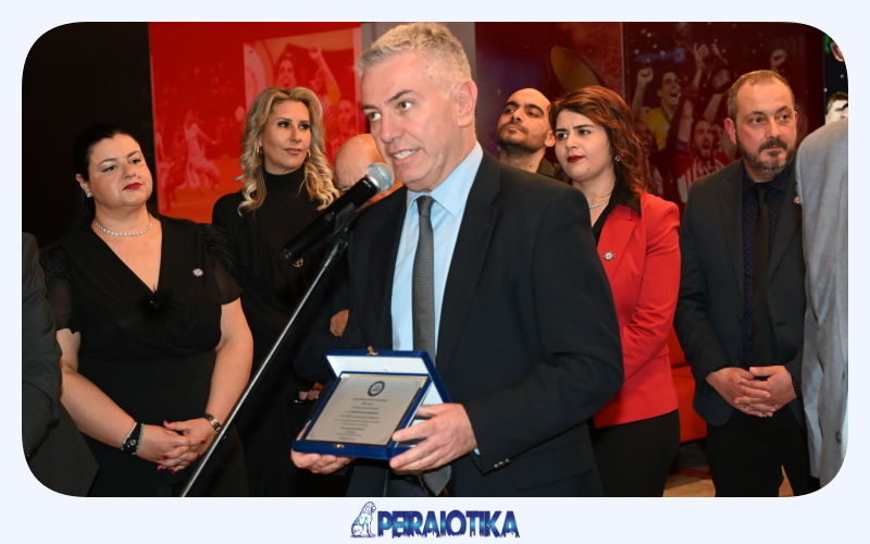 Στην εκδήλωση κοπής της πρωτοχρονιάτικης πίτας του Βιοτεχνικού Επιμελητηρίου Πειραιά, που πραγματοποιήθηκε στο Γήπεδο Γ. Καραϊσκάκης, ξεχώρισε η τιμητική βράβευση του Δημάρχου Νίκαιας-Αγίου Ιωάννη Ρέντη, Κωνσταντίνου Μαραγκάκη, για τη διαρκή συμβολή του στην ενίσχυση της τοπικής επιχειρηματικότητας και της βιοτεχνικής δραστηριότητας.
