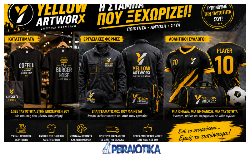 Στη YellowArtWorx, κάθε στάμπα είναι κάτι παραπάνω από σχέδιο είναι ταυτότητα. Είτε πρόκειται για επαγγελματικό χώρο, είτε για ομάδα, είτε για καθημερινή χρήση, το ζητούμενο είναι ένα: να ξεχωρίζεις.